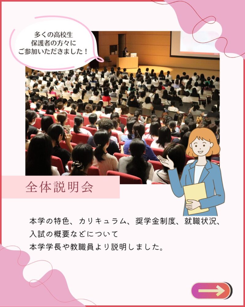 ・参加前よりも「この学校で学びたい!」と思い、この先の受験勉強のモチベーションにもなりました。学生の方も先生方もとても親切に対応してくださり、有意義な時間を過ごすことができました。