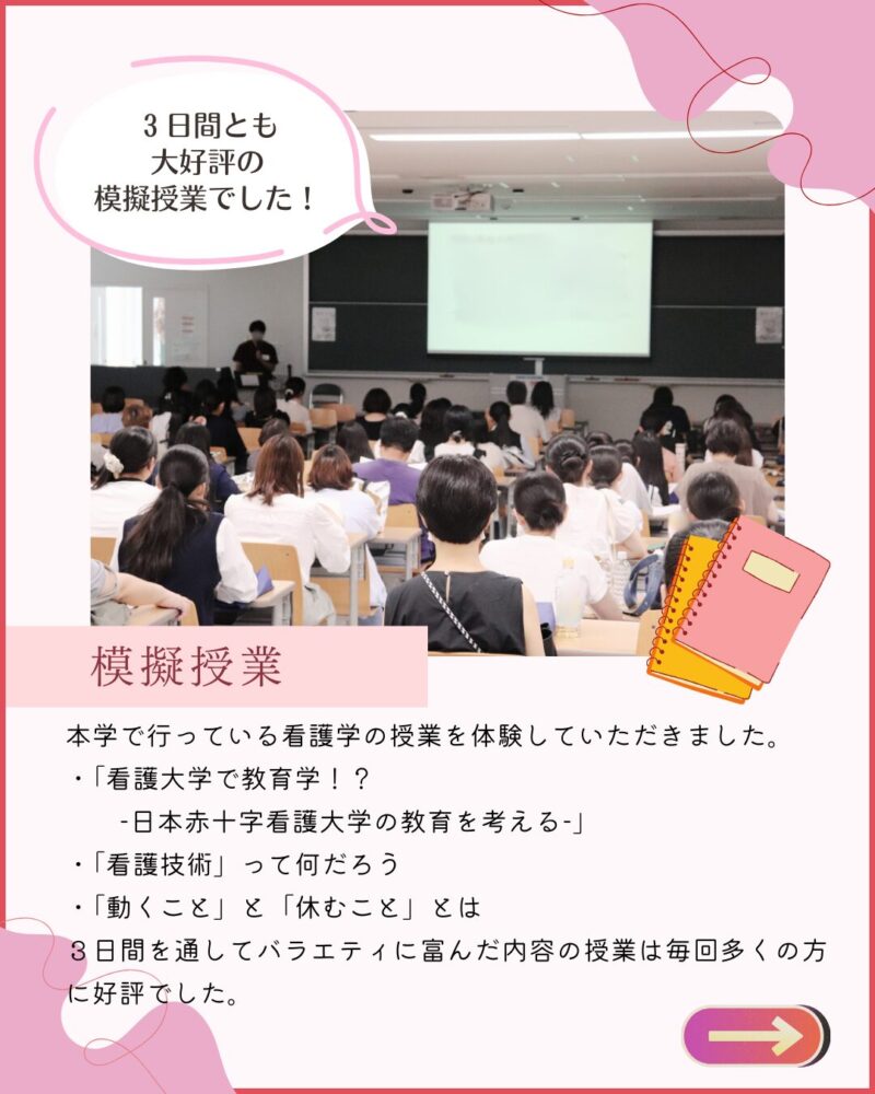 ・日本赤十字看護大学について以前より知ることができました!ぜひこの学校で学びたいという意欲がとても高まりました。