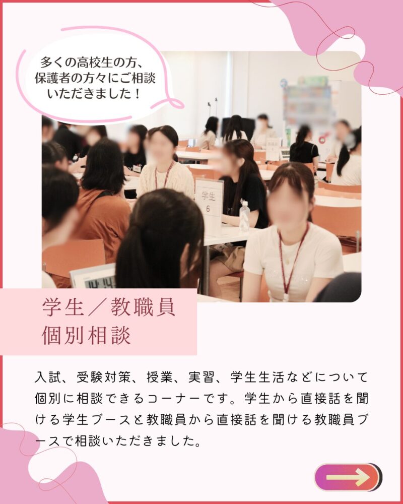 ・個別相談は学生のリアルなお話が聞けて大変参考になりました。