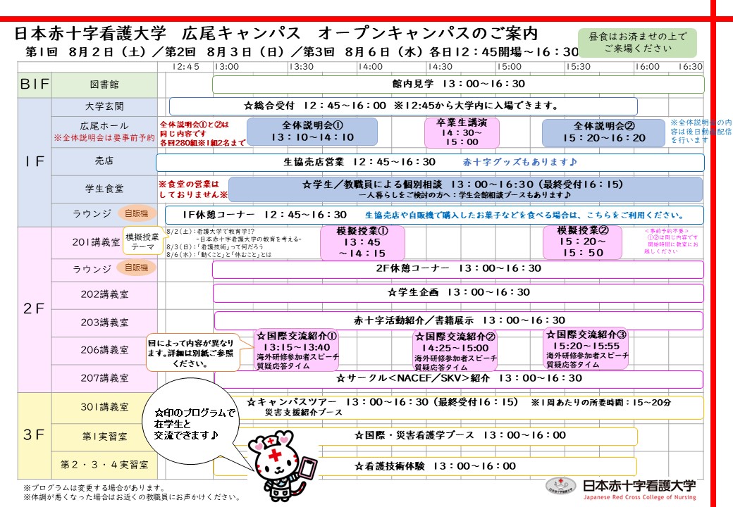 2025年のオープンキャンパスは8/2(土)、8/3(日)、8/6(水)の3日程で開催されました。
