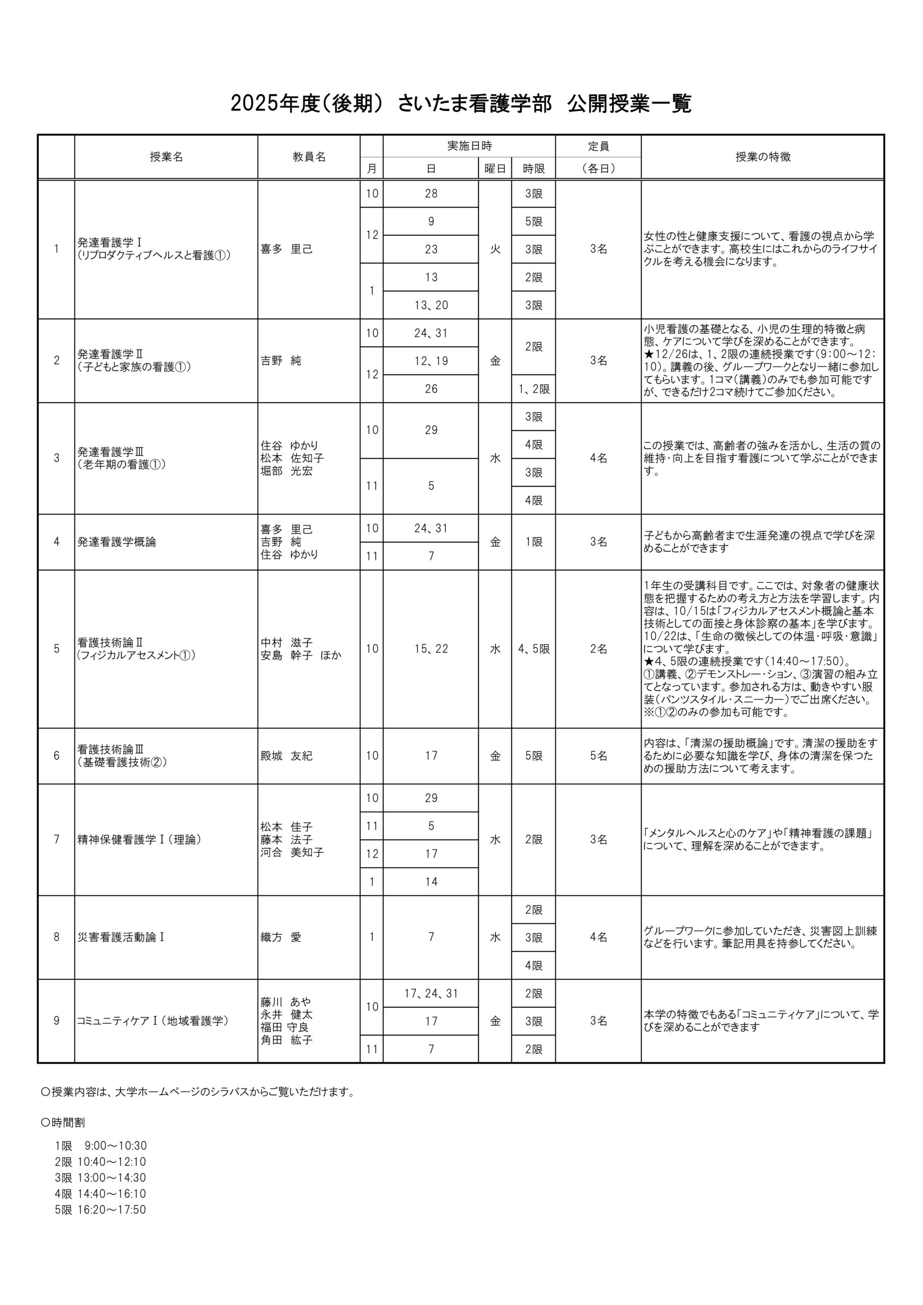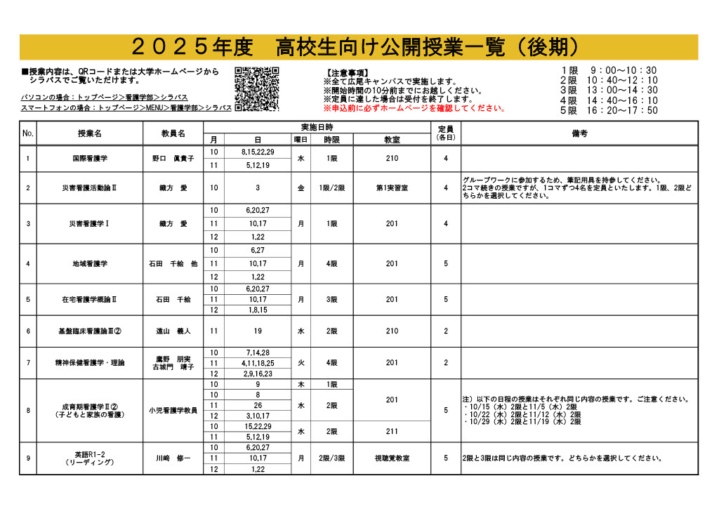 2025年度後期の公開授業一覧を公開いたしました。