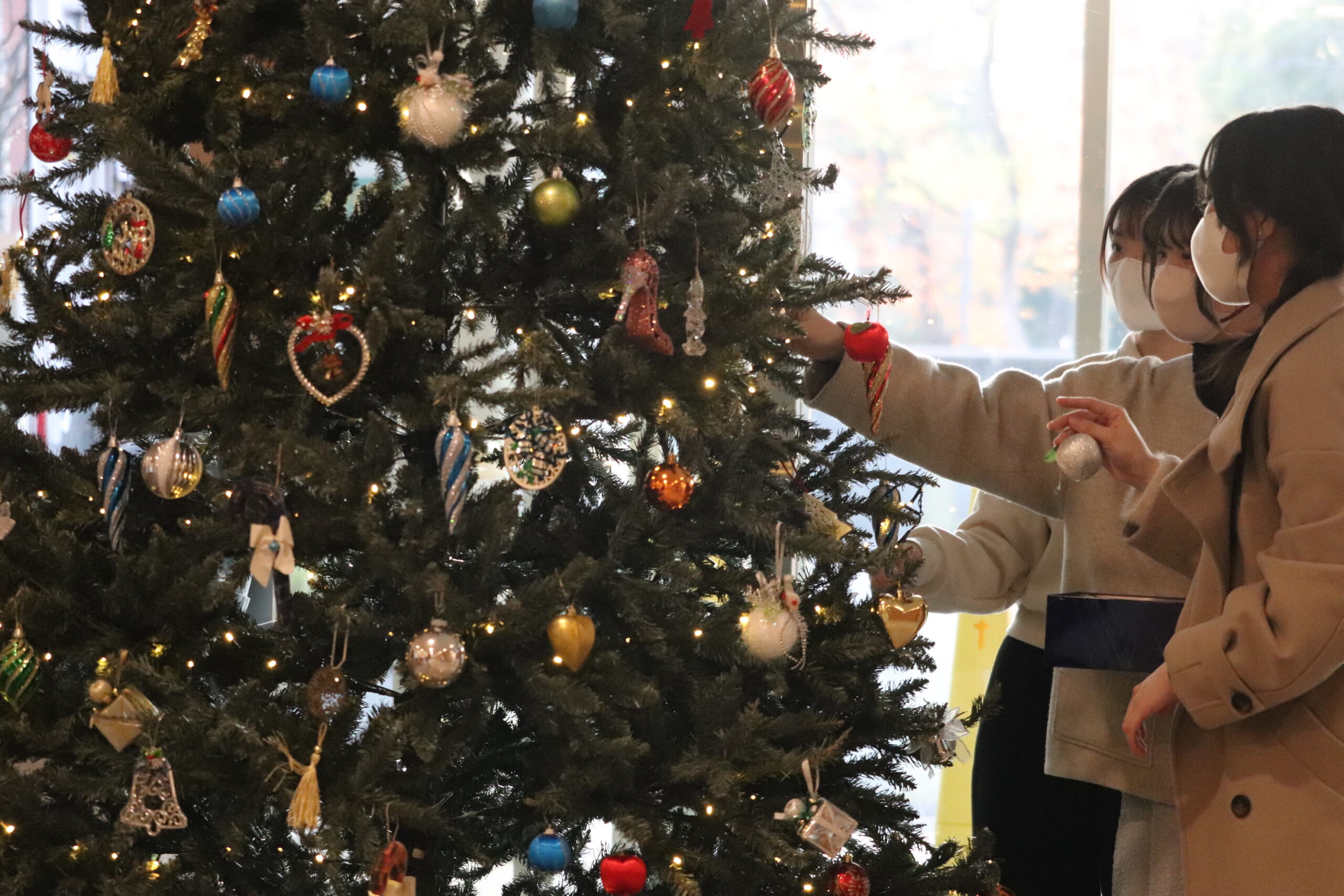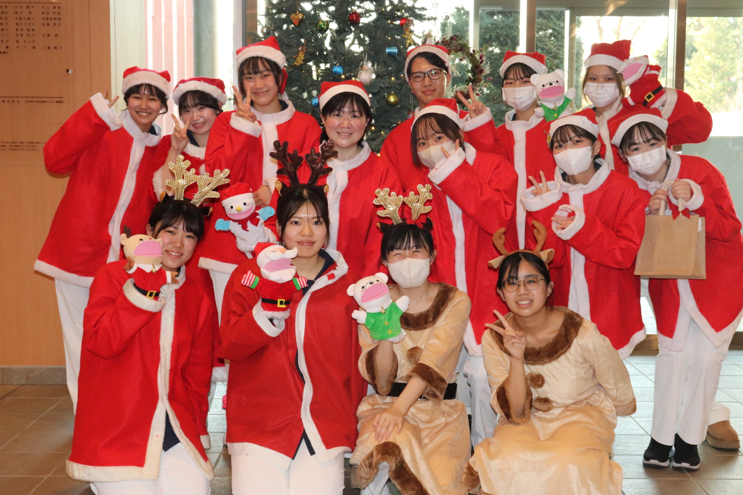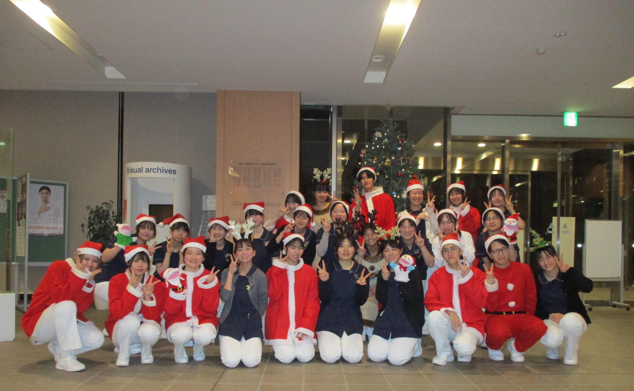 2025/12/17 看護学部 クリスマスツリーの飾りつけとキャロリングを行いました Homeニュースお知らせ看護学部クリスマスツリーの飾りつけとキャロリングを行いました 12月になり、広尾キャンパスでは学生による毎年恒例のクリスマスツリーの飾りつけが行われました。 かわいらしいオーナメントが飾られ、学内が一気に華やぐツリーが完成しました! また、本学学生がサンタクロースに扮し、隣接する乳児院や病院、福祉施設を訪ねるキャロリングも行われました。 キャロリングではクリスマスソングを歌い、手作りの折り紙人形をプレゼントします。 学生たちの歌声と手作りのプレゼントが、多くの方のクリスマスに彩を添えました。