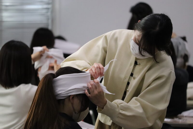 第2部では、部署や学年に応じたプログラムを展開しました。各プログラムに教職員も参加し、学生-教職員との交流の機会ともなっています。1年に1回の貴重な機会ですが、熱心に取り組まれ、自助共助の視点で自分自身ができることの幅を広げたりすることにつながる訓練となりました。